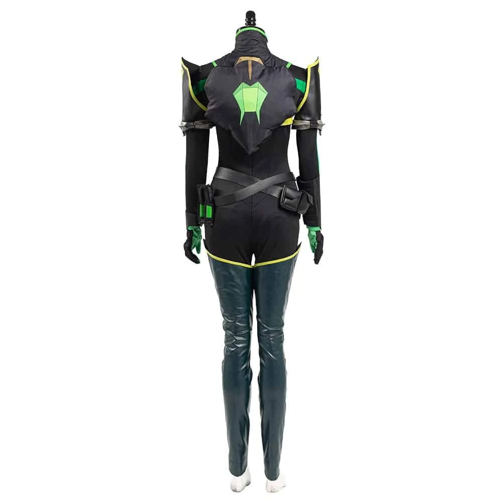 Package includes: Jumpsuit, Belt, Waist Bag, Arm Piece, Gloves, Leg Piece Valorant Viper Jump Cosplay Costume